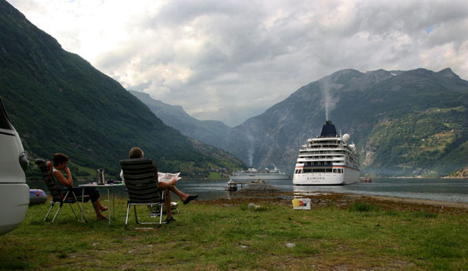 muihin harrastuksiin. Leirintäalueella on pitkä rantaviiva Geirangervuonon päässä. Siten sieltä näkee upeasti lukuisat rannan tuntumaan ankkuroivat